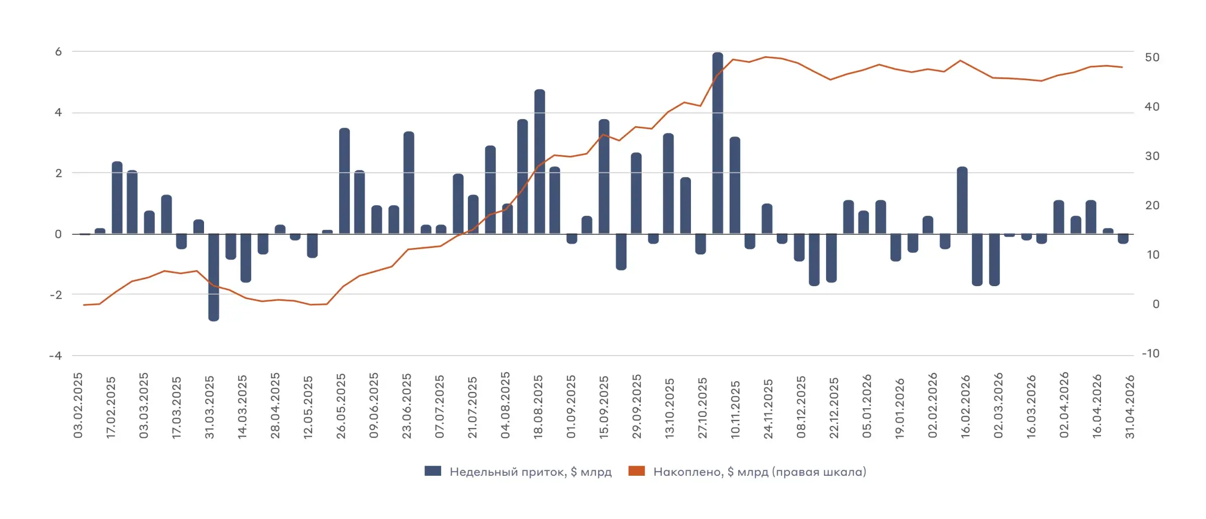Снижение интереса к криптовалютам отразилось в сокращении притоков в ETF-фонды, инвестирующие в цифровые активы.