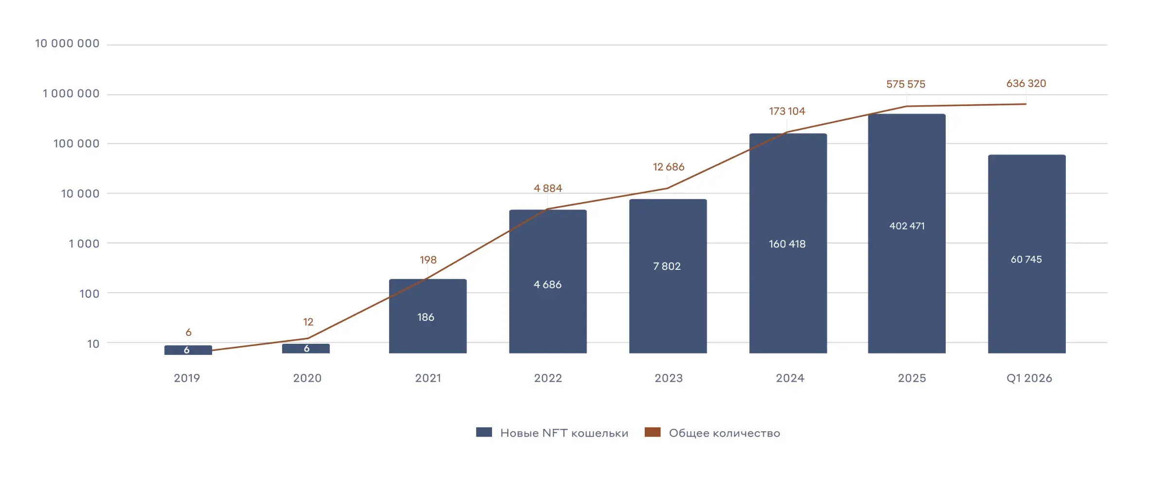 Интеграция NFT в Telegram поддерживает спрос за счёт возможности выделять профиль и передавать активы другим пользователям. Это сформировало вторичный рынок и расширило использование NFT как инструмента для небольших инвестиций. TON используется как основная расчётная единица.